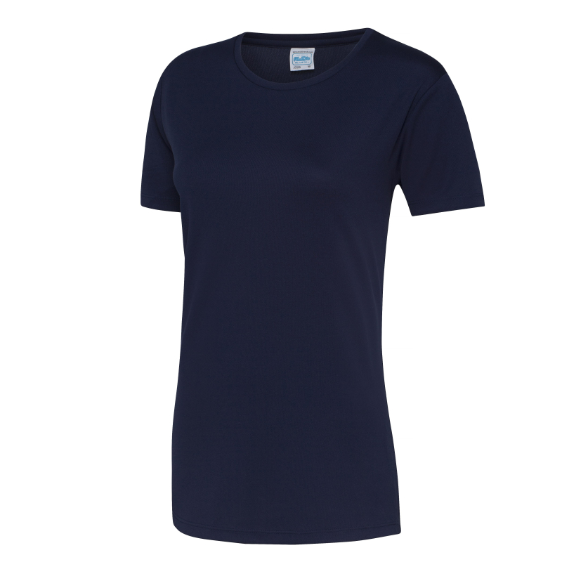 T-shirt cool Femme AWDis JC005. Manches montées. Coupe féminine. Bord arrondi dans le dos pour plus de confort. Bande de propreté. Protection UV UPF 30+.