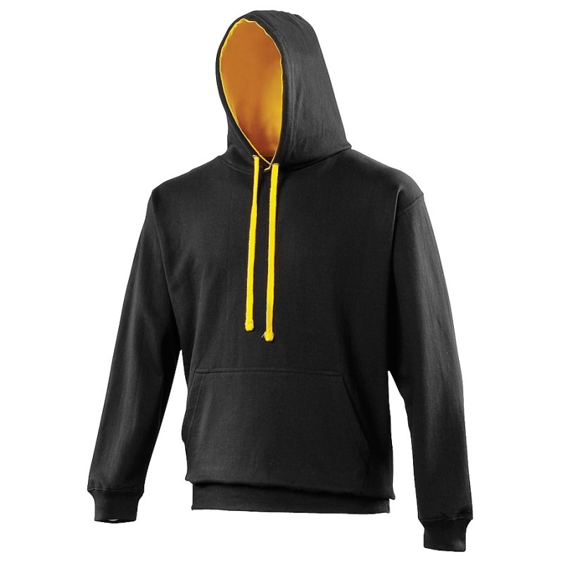 Sweat-shirt à capuche Varsity AWDis JH003. Capuche à double épaisseur contrastée et cordon dans le même coloris. Look streetwear assuré.