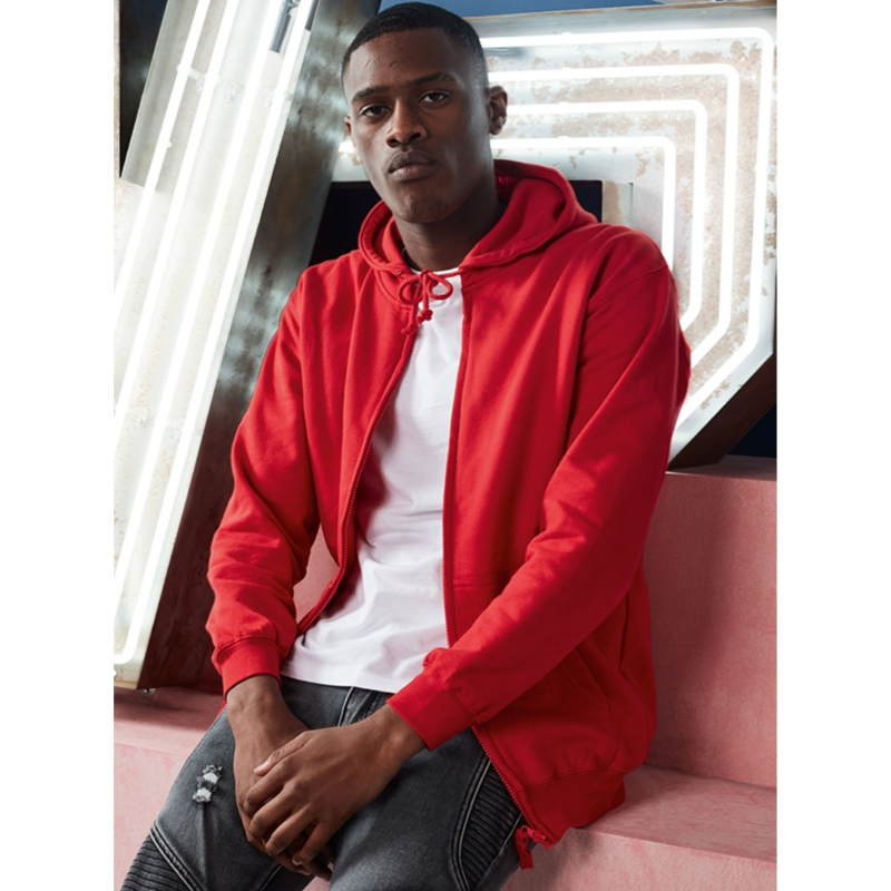 Poids 280 g/m². Composition 80% coton, 20% polyester. Tirette en ruban sergé de même couleur. Zip principal recouvert. Ouverture cachée pour y faire passer les fils d'oreillettes. Capuche à double épaisseuret cordon de la même couleur, poche frontale kangourou. Étiquette détachable idéale pour une personnalisation facile.