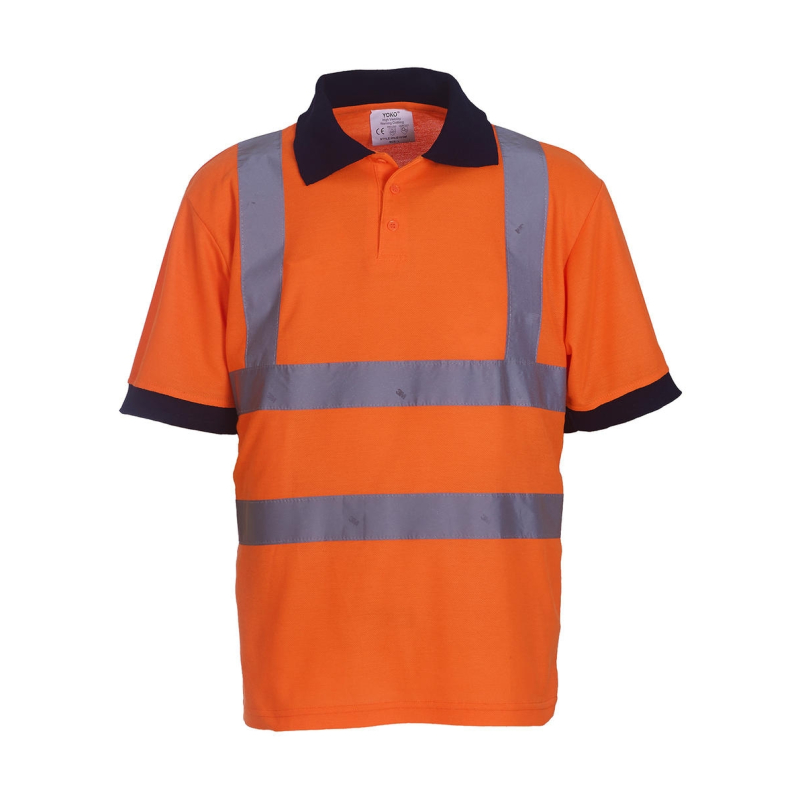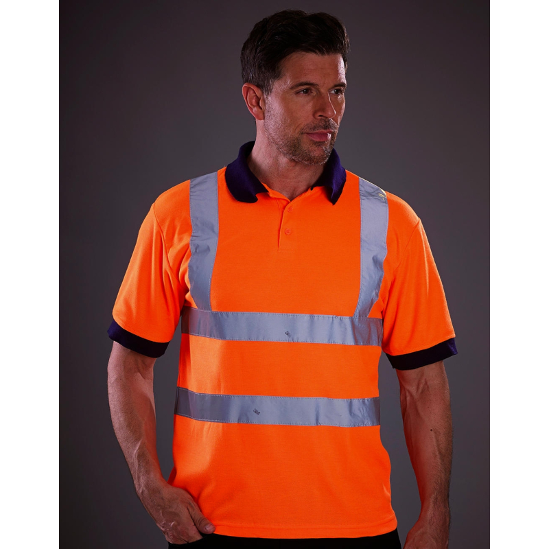 Fluo Polo Yoko HVJ210/3M - Polo haute visibilité avec bandes 3M horizontales et verticales devant et dos et patte de boutonnage 3 boutons, col et manchettes contrastées.