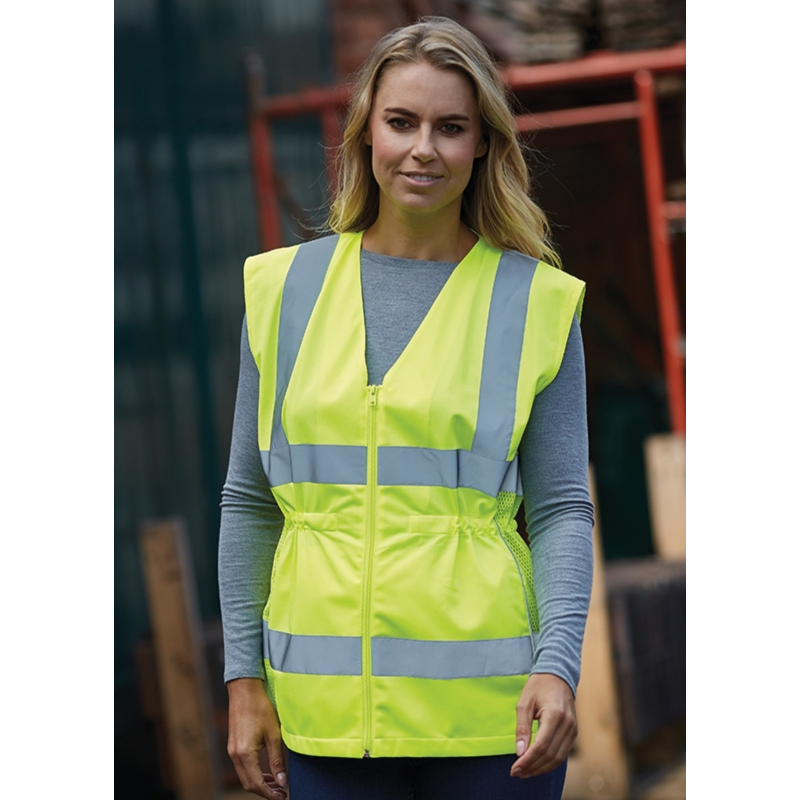 Fluo Ladies Executive Waistcoat Yoko HVW180 - Gilet de Sécurité haute visibilité pour femme avec cintrage à la taille par élastique.