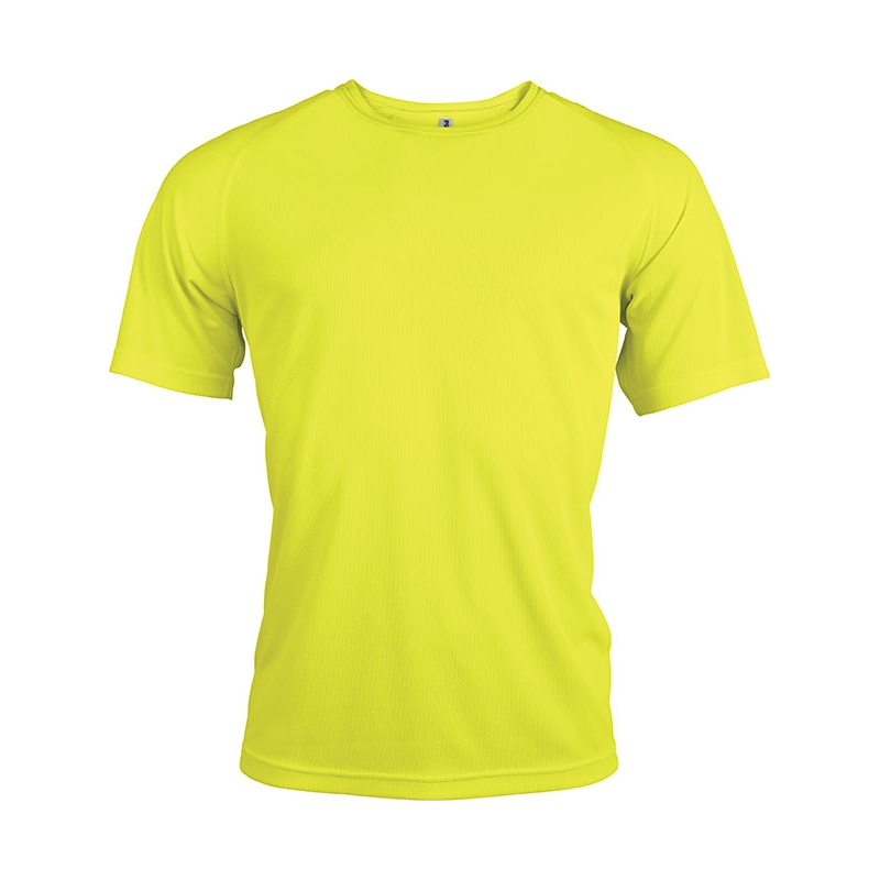 T-shirt de sport manches courtes Proact PA438, en 100% polyester respirant garantissant une bonne évacuation de la transpiration pendant l'effort et un séchage rapide. Existe aussi en version pour femme et enfant.