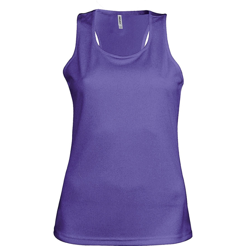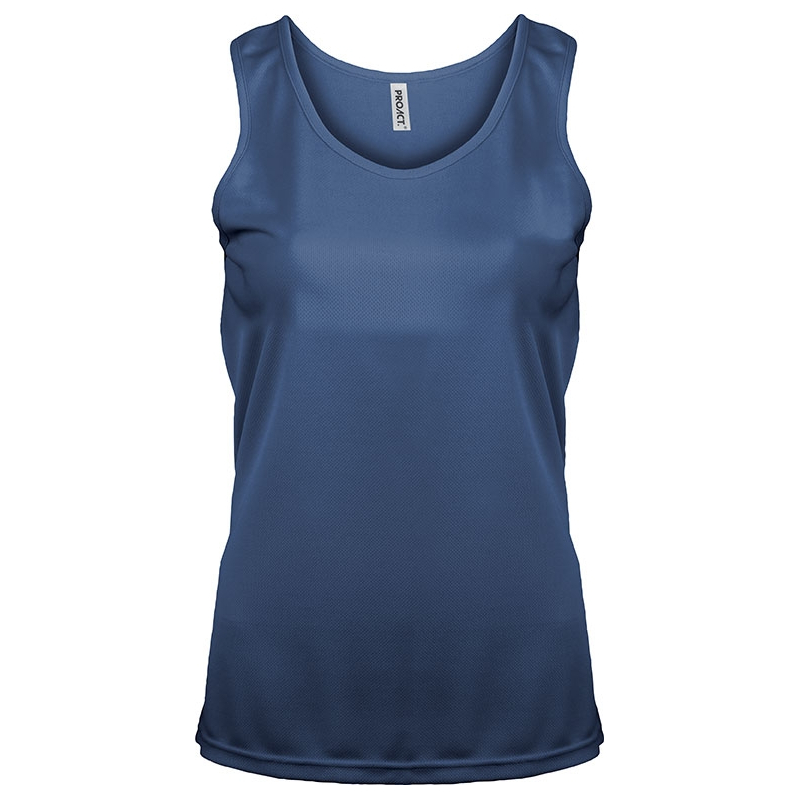 Débardeur de sport pour femme Proact en 100% polyester, entretien facile et séchage rapide. Existe en modèle pour homme.