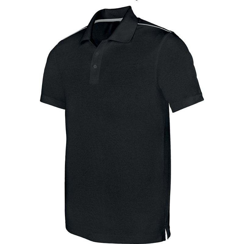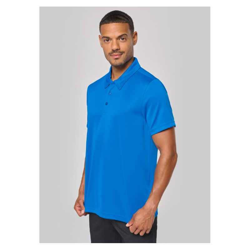 Polo sport pour homme en 100% polyester, améliore l'évaporation de la transpiration et sèche rapidement. Existe en modèle pour femme.