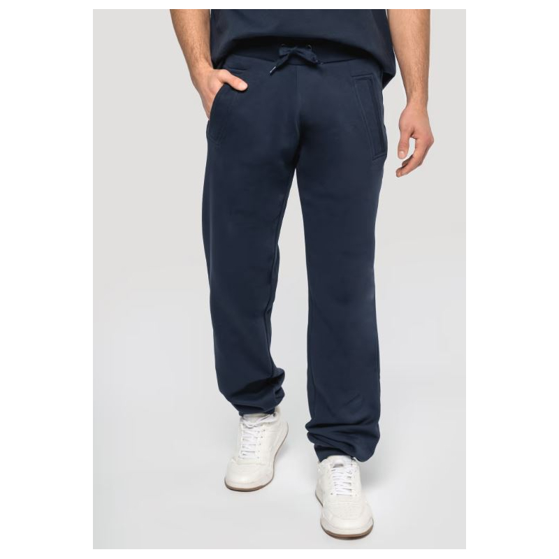 Poids : 300 g/m2, Composition : 80% coton, 20% polyester. Molleton face intérieure gratté. 2 poches côtés et 1 poche arrière plaquée. Large bord-côte et lien de serrage à la taille. Bord-côte aux bas de jambe. Tailles disponibles de XS à 4XL
