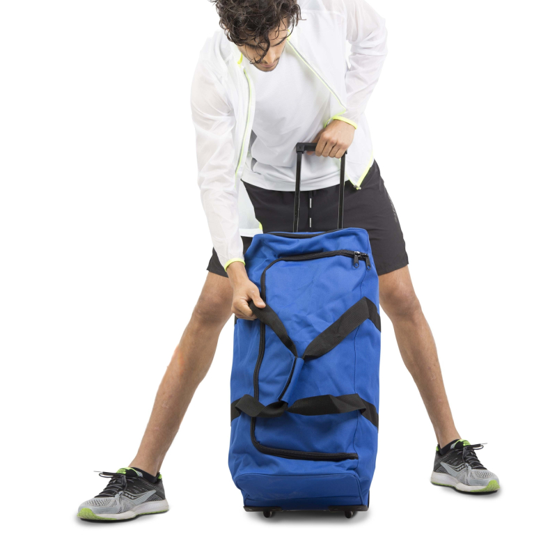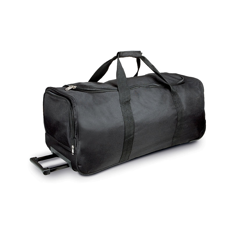 Dimensions : 70 x 30 x 31 cm. Composition : Polyester 600D. Sac monté sur système a roulettes "trolley" avec poignée escamotable. Grande ouverture sur le dessus. Compartiment range chaussures sur le côté. Lanières renforcées tout autour du sac.
