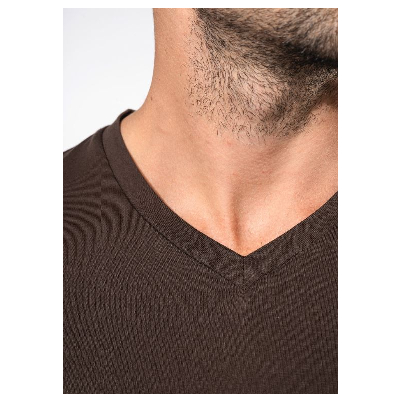 T-Shirt Col V manches courtes homme en 100% coton peigné lavé au enzymes, pour un toucher doux et soyeux. Existe en manches longues et en modèle pour femme.
