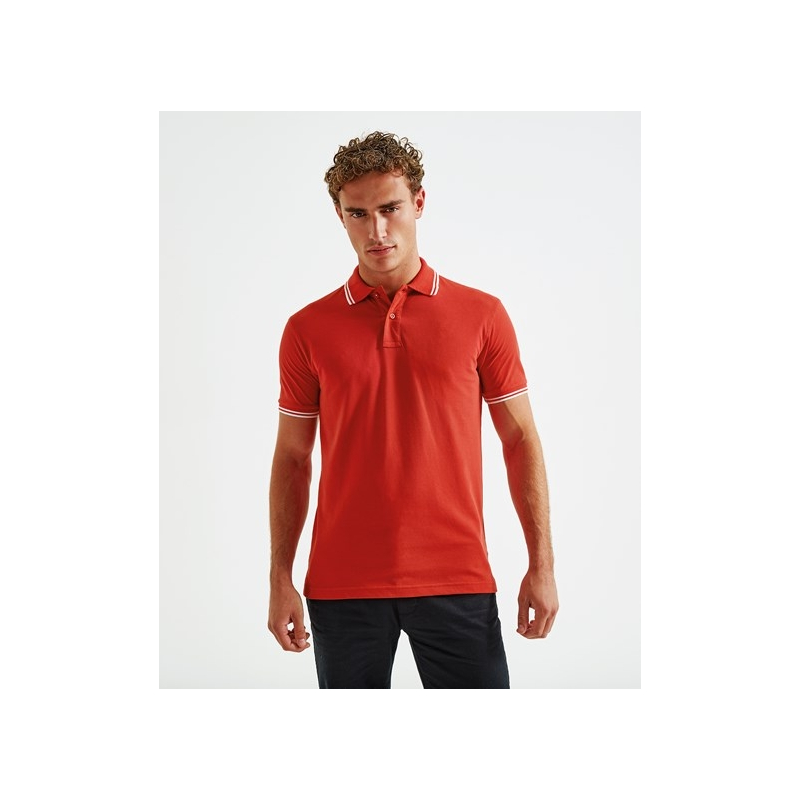 Poids : 200 g/m2. Composition : 100% Coton peigné à fil de chaine continu (ringspun). Charcoal et Heather : 60% Coton peigné à fil de chaine continu ringspun, 40% Polyester. . Polo coupe classique avec liseré contrasté sur le col et les poignets. Patte de boutonnage à 2 boutons. Manches courtes. Fentes latérales. Col et poignets en côte. Instructions de lavage: Lavage domestique à 30°.
