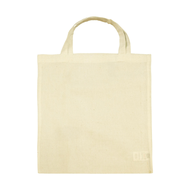 Poids : 140 g/m² | 100% coton organique | poignée courte 35 cm | point croix à la poignée pour plus de maintien | coutures repliées pour prévenir du rétrécissement | dimensions : 38 x 42 cm | convient à la broderie, la sérigraphie et au transfert sac repassé | Lavage à la main à l`eau tiède uniquement