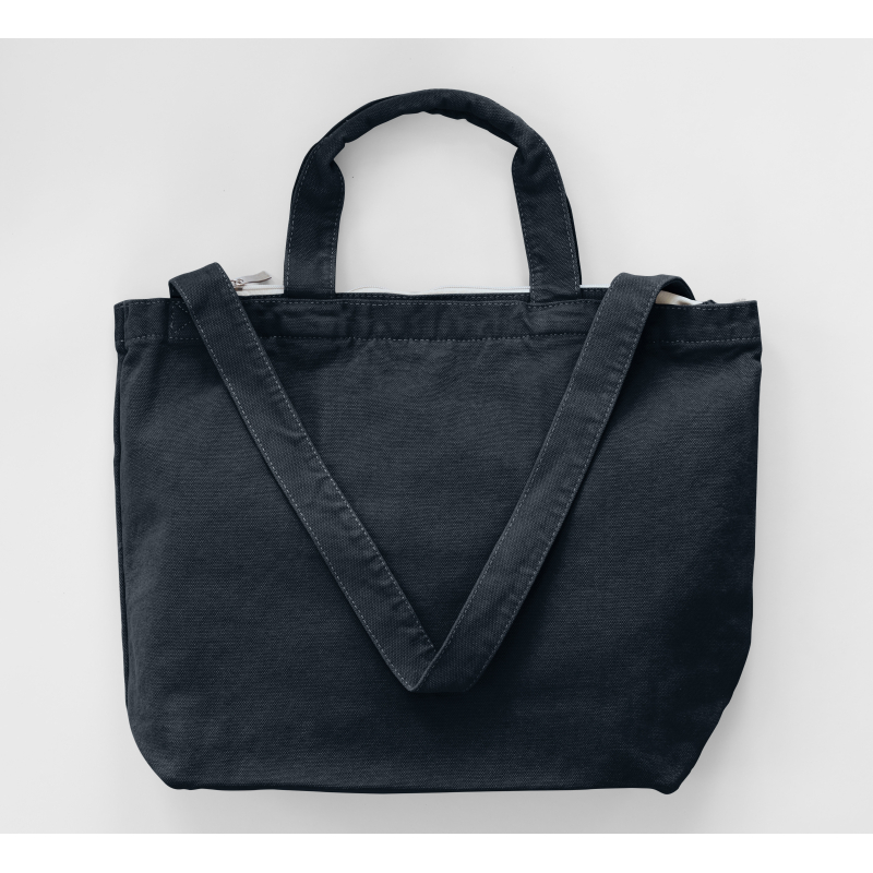 Poids : 450 g/m² | 100% coton toile | Tissu teint et lavé chaque pièce est unique | Poignées courtes SH: ca. 40 cm, manche long LH: ca. 74 cm | Fermeture à glissière complète | Poche intérieure: 14 x 15 cm | Coutures contrastées | Plié au bas du torse: 32 x 12 cm | Dimensions: 44 x 33 x 12 cm | Convient pour sérigraphie, transfert, numérique, broderie. | Lavage à la main à l`eau tiède uniquement