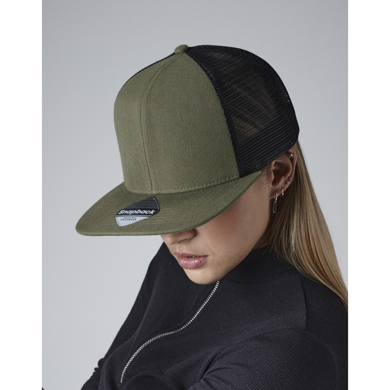 Original Flat Peak 6 Panel Trucker de la marque Beechfield, référence B664. Casquette avec l'arrière en filet et un dessus plat