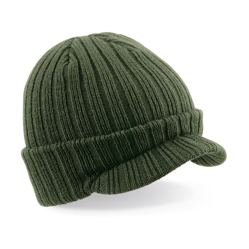 Peaked Beanie, bonnet en maille côtelée large avec une visière de la marque Beechfield, succès garanti cet hiver !