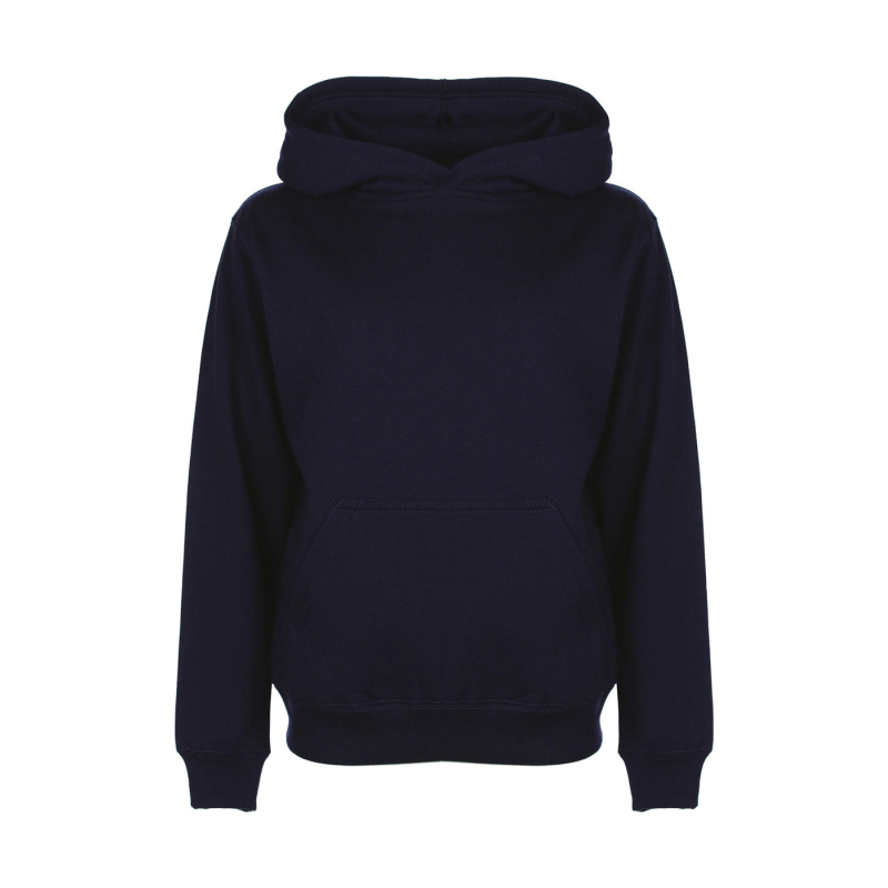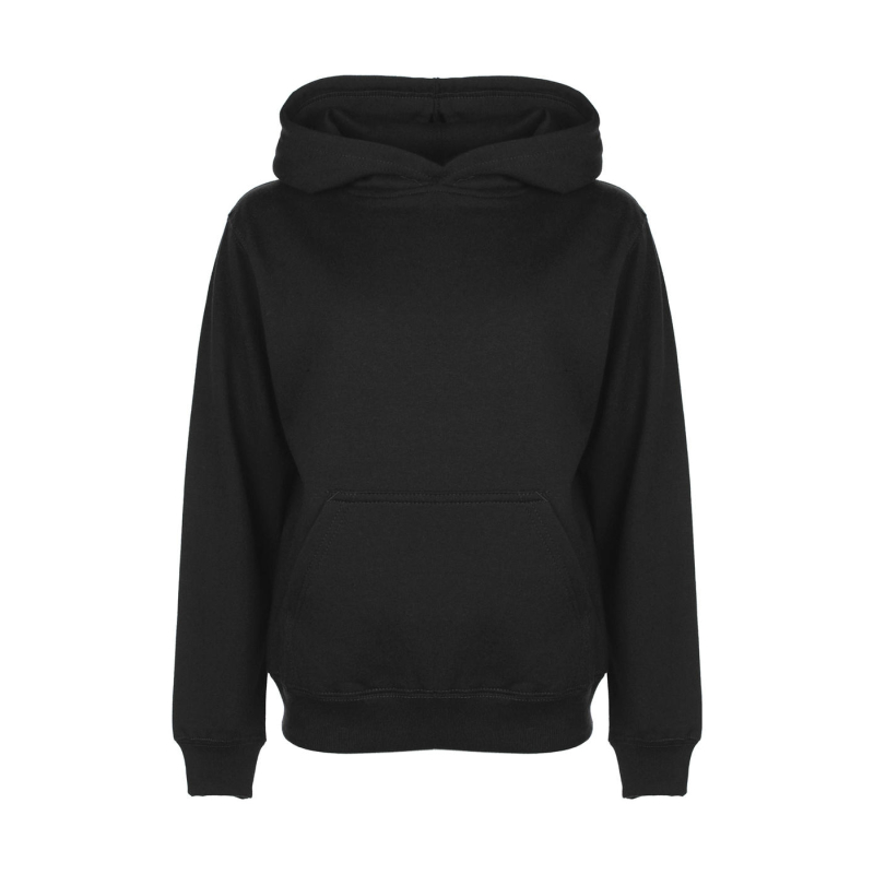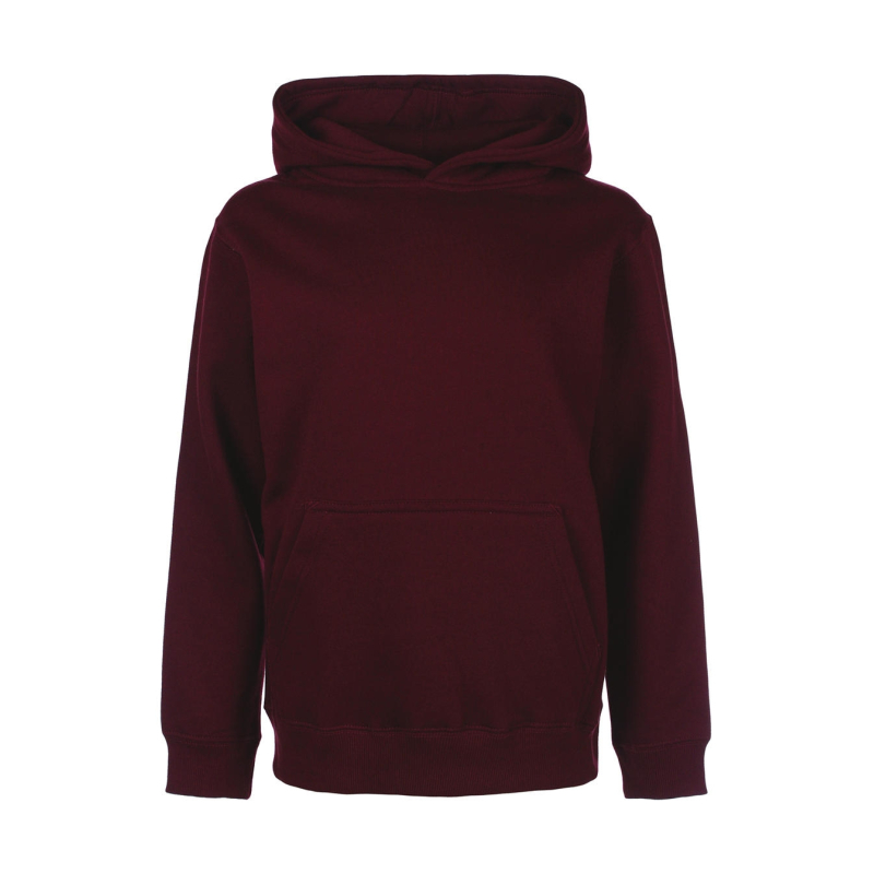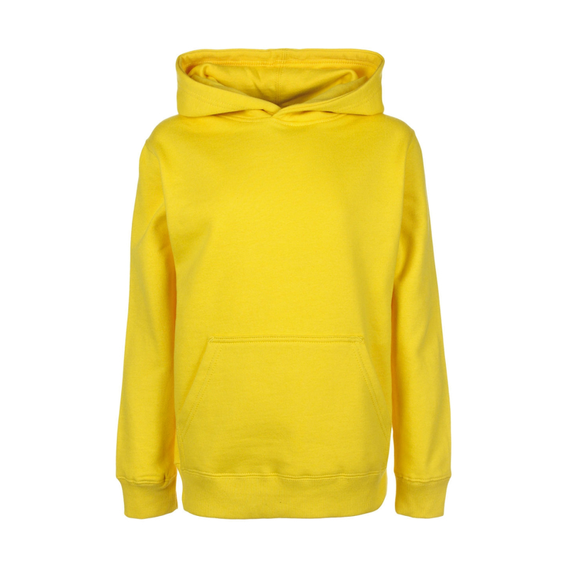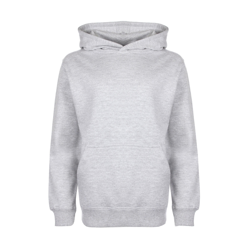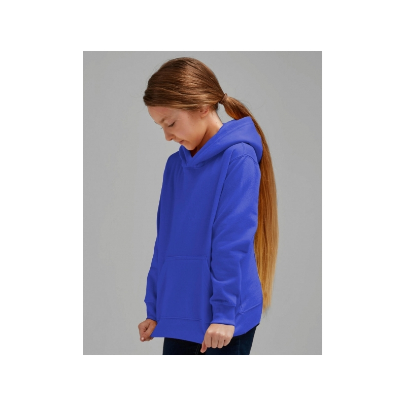 Poids : 300 g/m² | 80% Coton, 20% Polyester | Sport Grey: 70% Coton, 30% Polyester | Modèle enfant unisexe | Colorant réactif | Capuche doublée sans cordon | Manches set-in | Poches kangourou à l`avant | Double surpiqûre | Bord côte avec élasthanne aux manches et au bas du torse