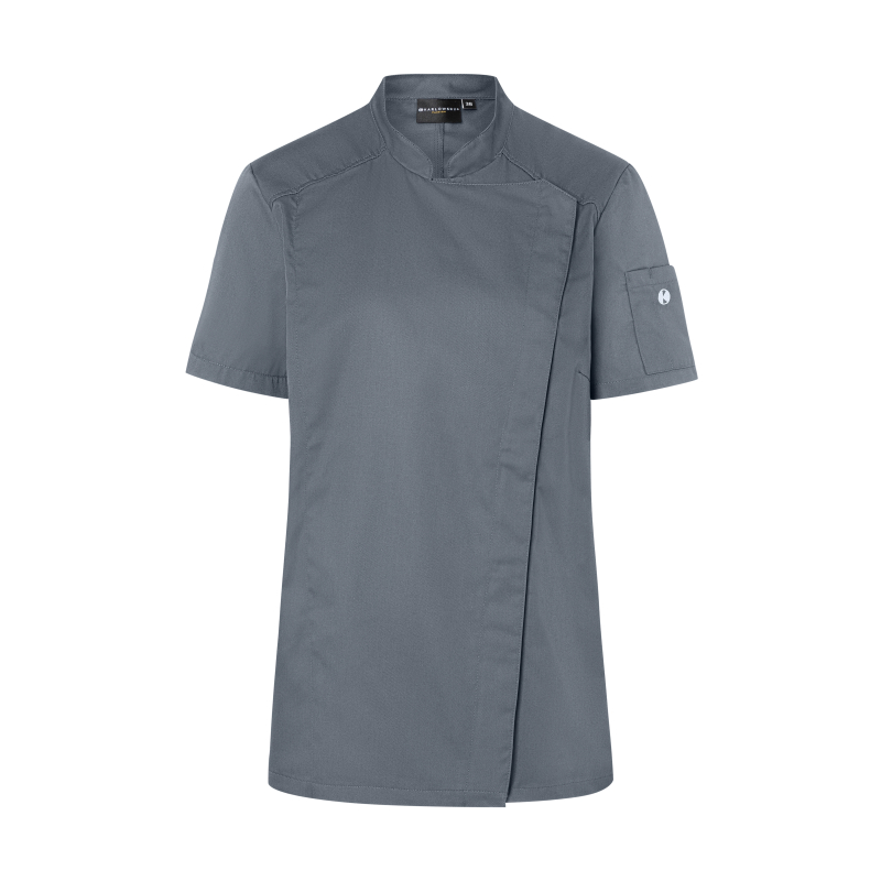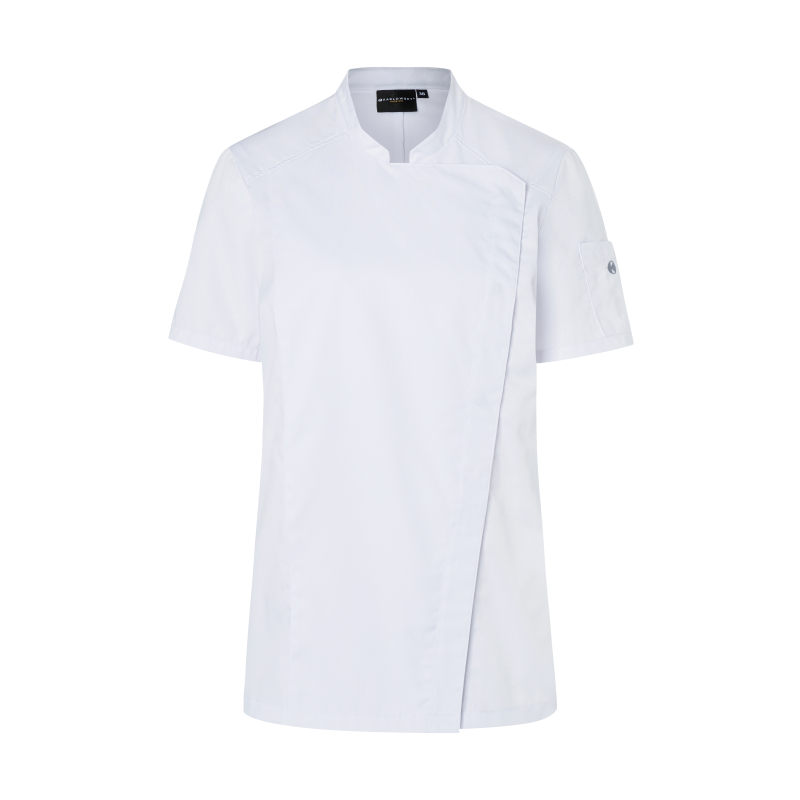 Un look résolument moderne pour cette veste de chef pour femme. Cette version manches courtes est idéale pour l'été. Parfaitement adapté pour travailler confortablement dans des environnements chauds.