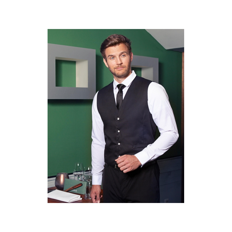Poids : 215 g/m² | 65% polyester, 35% coton, pré-rétréci, tissu de haute qualité | 4 boutons de fermeture | 2 fausses poches sur les côtés | Ceinture ajustable avec boutons-pression au dos | Coupe serrée | Convient pour la lessive industrielle | Lavable jusqu`à 95°C | Facile d`entretien.