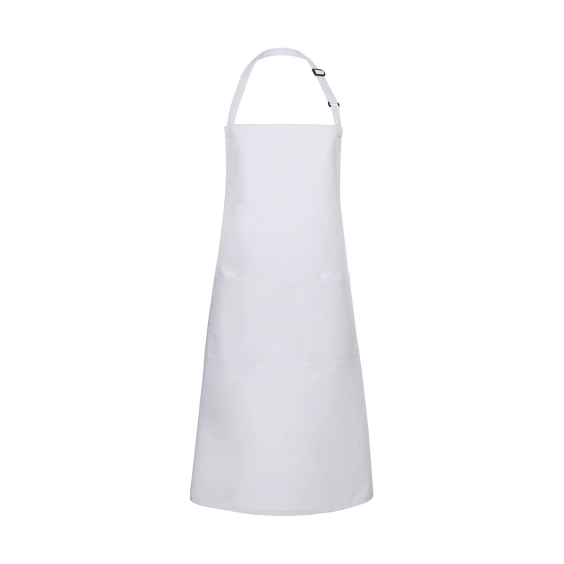 Poids : 215 g/m² | 65% polyester, 35% coton | Renforcé en des points stratégiques | Ruban de cou 70 cm, réglable avec boucle | Poche plaquée 40 x 20 cm avec 2 compartiments | Lavable jusqu`à 60°C | Nettoyage à sec | Dimensions: 70 x 90 cm