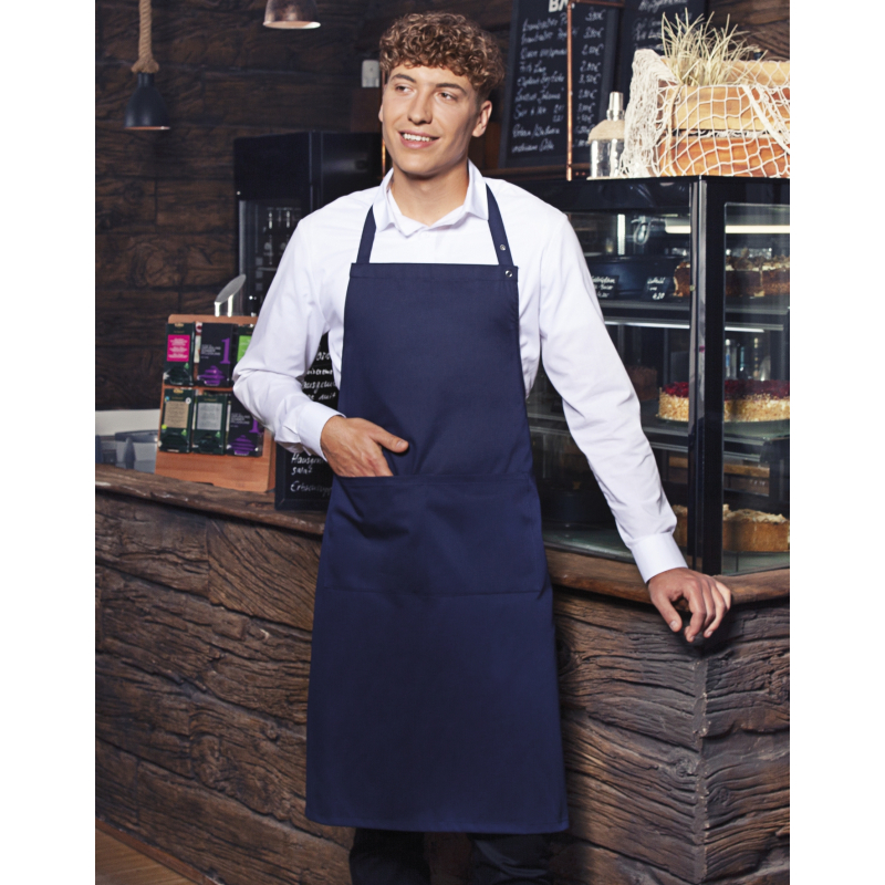 Poids : 215 g/m² | 65% polyester, 35% coton, pré-rétréci, tissu de haute qualité | Renforcé en des points stratégiques | Tour de cou réglable en longueur avec 3 boutons-pression | Convient pour la lessive industrielle | Lavable jusqu`à 95 ° C | Facile à entretenir | Dimensions: 75 x 95 cm.
