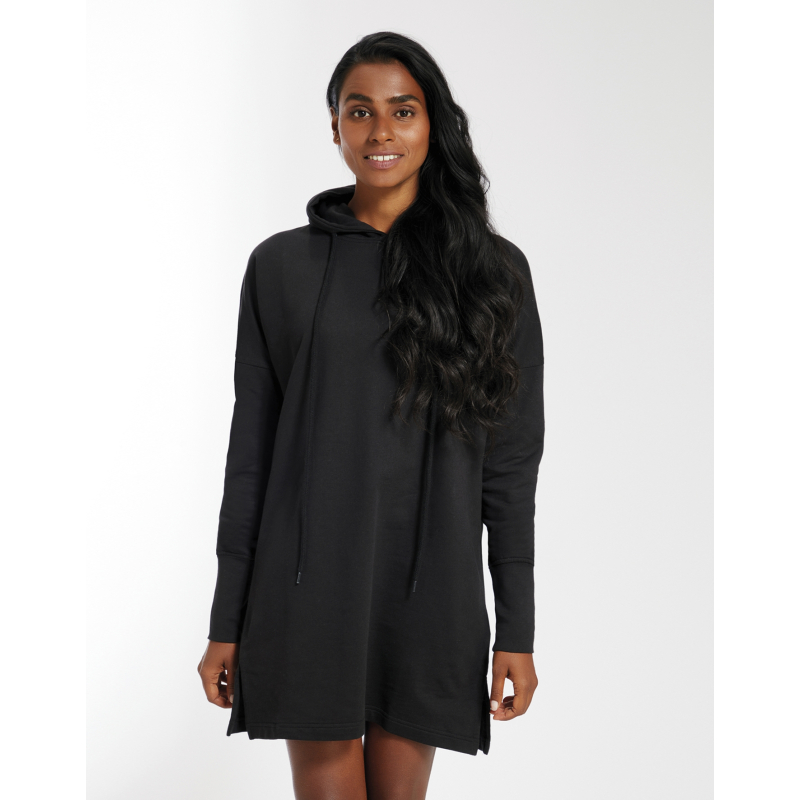 Poids : 300 g/m² | 80% coton organique, 20% polyéthylène recyclé | French Terry | Capuche non amovible avec cordons de serrage très longs | Bords côte aux poignets avec ouvertures pour les pouces | Ourlet avec fentes latérales | Descend au-dessus du genou | Etiquette détachable | Contient des matériaux recyclés | Oversized