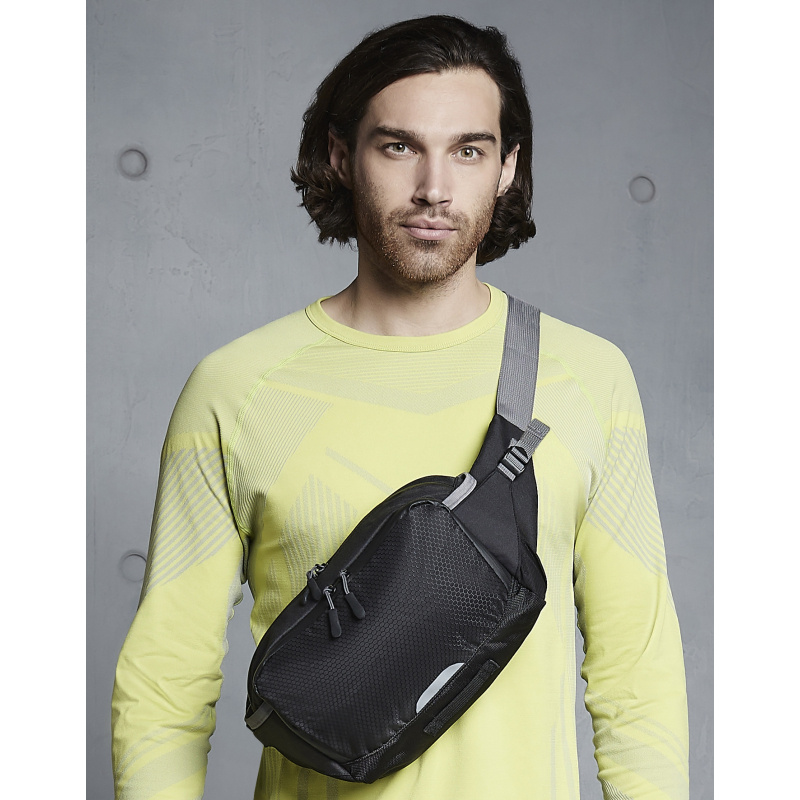 100% Polyester 600D/600D ripstop nid d`abeille | Porte- clés, 2 porte-bouteilles en filet | Sangles de compression | Bandes réfléchissantes | Compartiment principal à fermeture éclair et poche avant, poches multiples internes | Panneau rembourré, respirant en filet | Sangle de taille entièrement réglable | Étiquette détachable | Capacité: 5 Litres | Dimensions: 29 x 18 x 11 cm | Espace pour la décoration: 17 x 9 cm. | Compatibles avec les tirettes de couleurs interchangeables 093.30 QX505