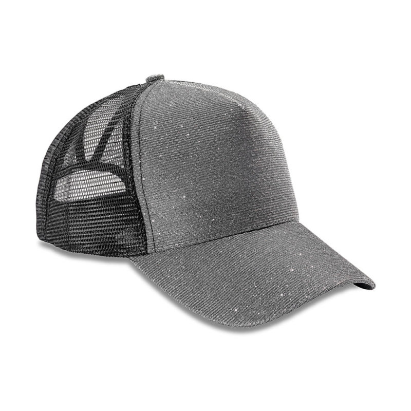 | 54 g/m² | 100% Polyester | Revers: 100% Coton | 5 panneaux: 4 panneaux filet, panneau avant matelassé pailleté | Visière courbée PE recyclé | Ouverture pour queue de cheval | Taille réglable | Etiquette détachable