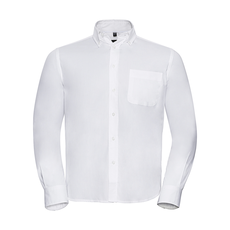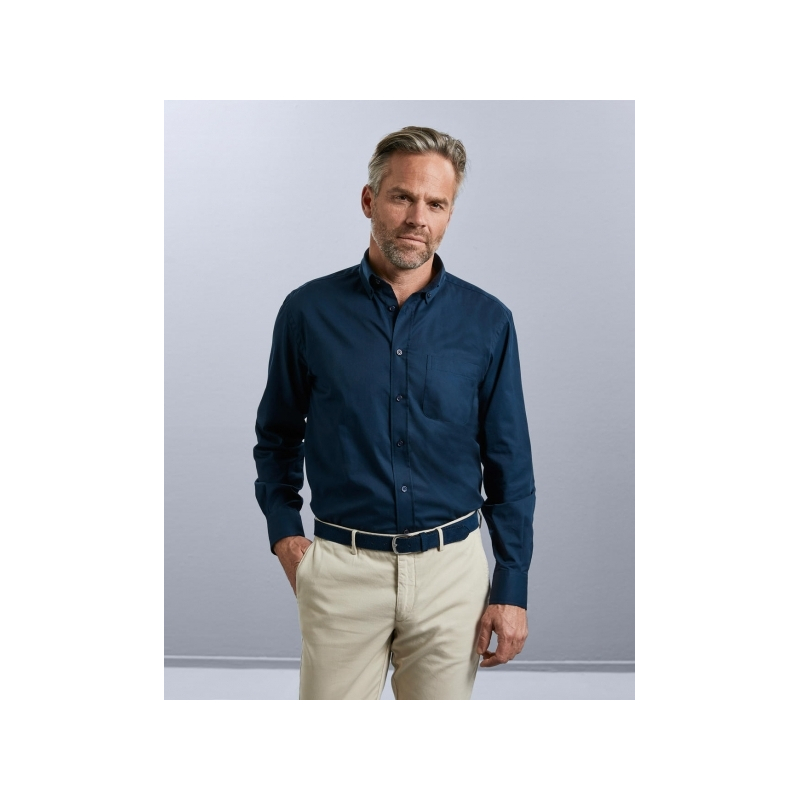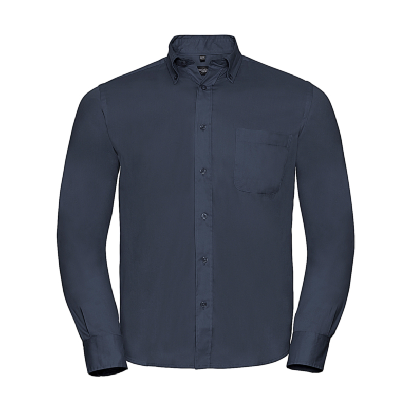 Poids : 130 g/m² | 100% coton sergé, effet velouté | manches longues | col avec pointes boutonnées | col de propreté en mailles chevrons ton sur ton | empiècement dos avec bouton central décoratif | boutons ton sur ton | poche de poitrine | poignets avec 2 boutons plus un sur la lisière | coupe classique | base arrondie | boutons de réserve