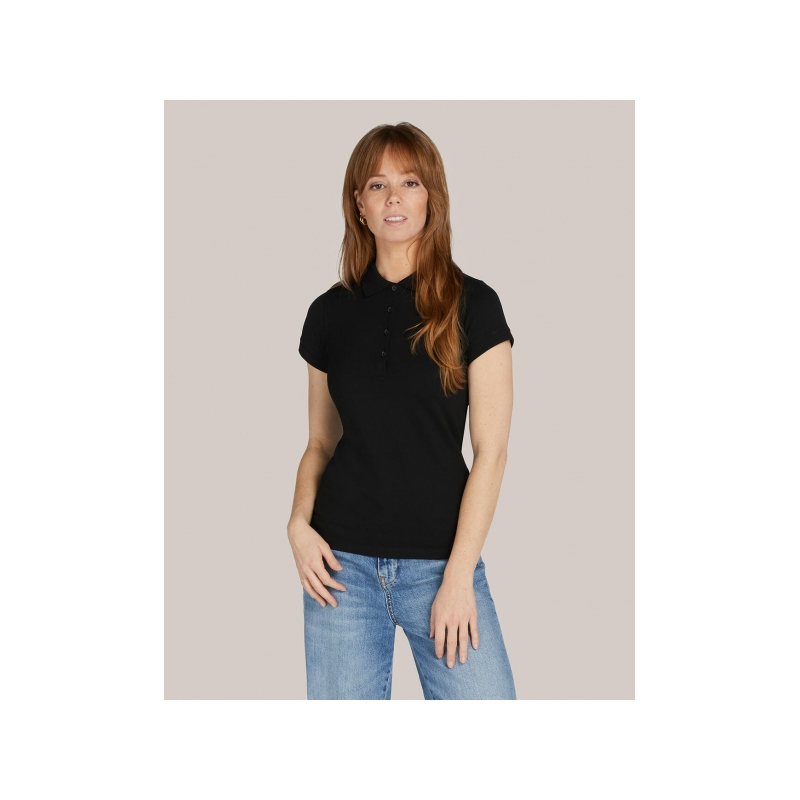 Signature Tagless Polo Stretch women de la marque SG, référence SGPoloF Stretch. Polo femme avec de l'élasthanne pour un look près du corps mode.