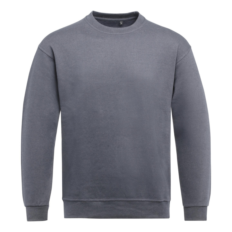 Poids : 280 g/m² | 50% coton, 50% polyester | Heather Grey : 78% coton, 22% polyester | Bande de propreté au niveau du cou | Col, ourlet et poignets côtelés | Coutures à double aiguille | Coutures latérales | Style sans étiquette, étiquette de taille décentrée dans le cou | Lavable à 60°C