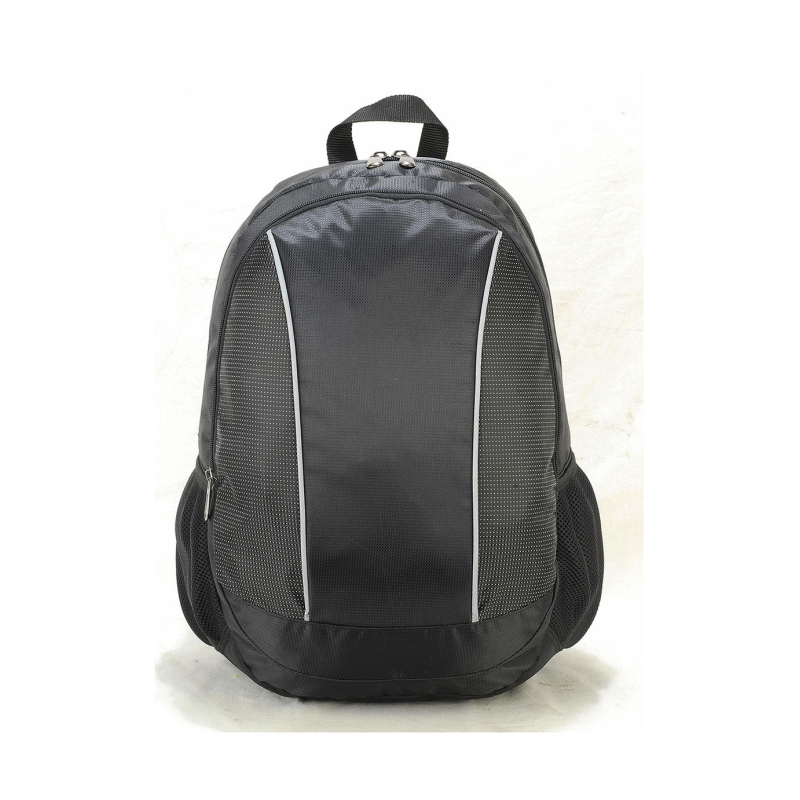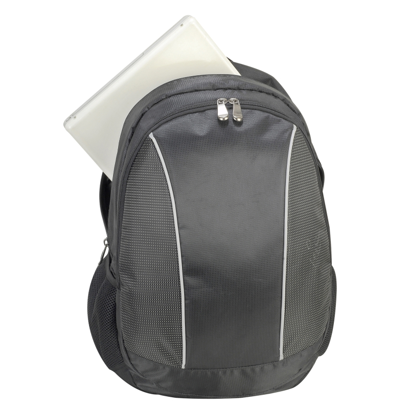 100% polyester jacquard/600D | Poignée de transport | Bretelles réglables rembourrées | Compartiment principal pouvant contenir un ordinateur portable de 15.6 | Deuxième compartiment avec fermeture à glissière pour accessoires d ordinateur portable avec section organiseur | Compartiment avec fermeture à glissière dissimulée dans le dos qui ne peut être accessible lorsque le sac à dos est porté anti-vol | Bandes réfléchissantes sur le devant | 2 poches latérales en filet | Convient pour la sérigraphie, le transfert et la broderie | Capacité: 27 Litres | Dimensions: 31 x 44 x 20 cm | surface pour la broderie: anneau tubualire de 11 | surface pour l impression: 12 x 15 cm.