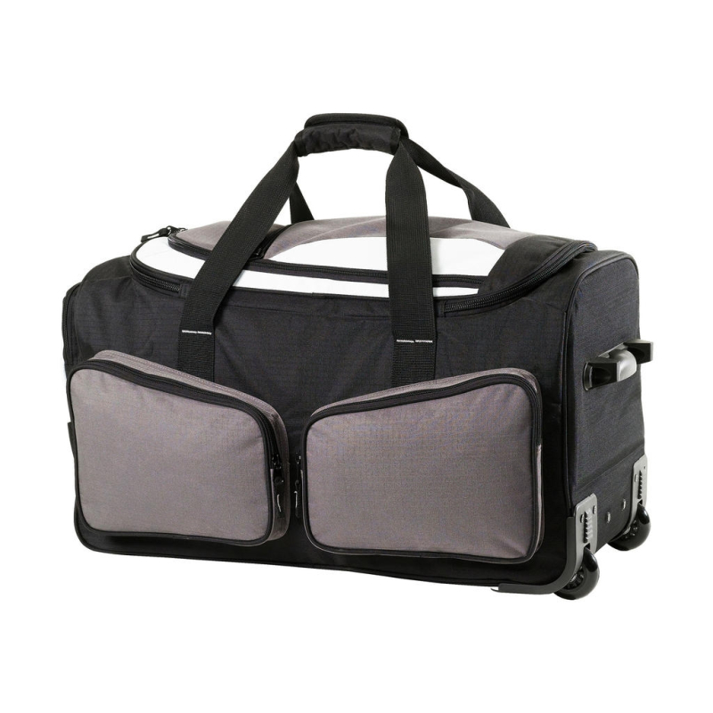 100% polyester 600D ripstop | poignée renforcée avec attache par scratch | poignée supplémentaire rembourrée sur le haut | large compartiment principal avec fermeture à glissière | 4 poches | sac trolley à usages multiples | convient pour impression/ impression par transfert ou broderie | poids: 3250 g | capacité: 75 litres | dimensions: 64 x 34 x 34 cm | surface pour la broderie: anneau tubulaire de 12 petites poches et 18 grande poche | surface de décoration: 16 x 12 cm petites poches, 30 x 14 cm grande poche