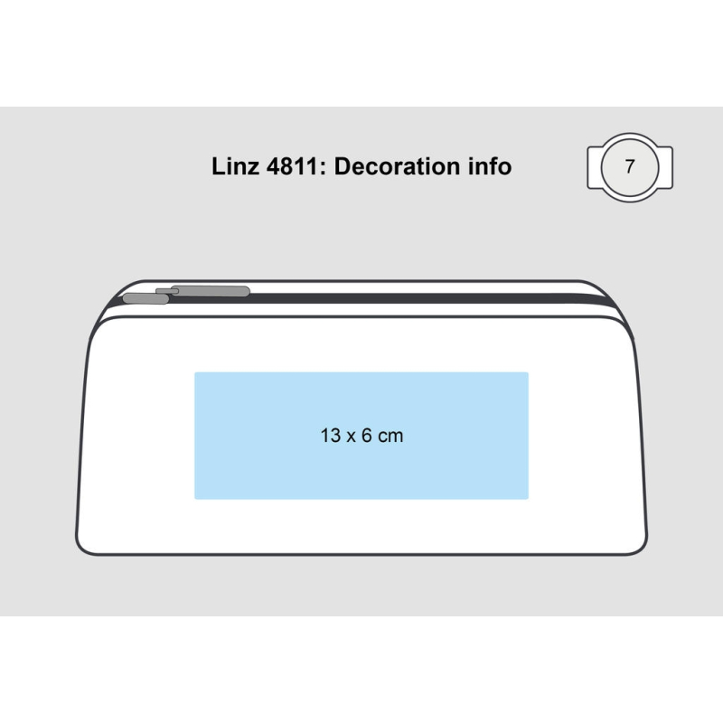 100% polyester microfibre/satin | trousse rectangulaire classique de maquillage | doublé | capacité: 0,7 litres | dimensions: 18 x 8,5 x 5 cm | surface de broderie: anneau tubulaire de 7 | surface d`impression: 13 x 6 cm