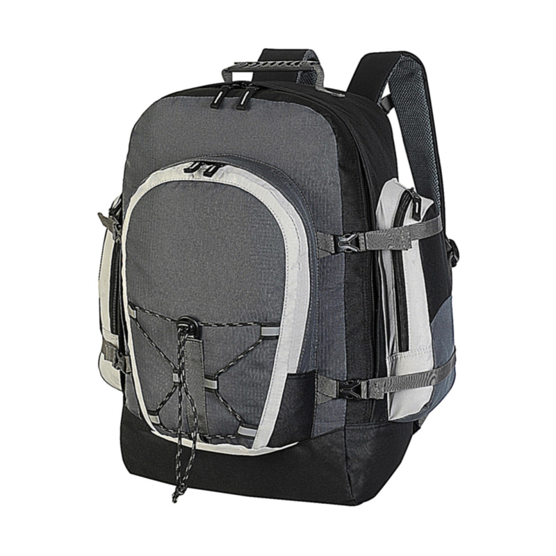 100% polyester 600D/600D Ripstop | sac à dos pour voyages | bretelles rembourrées réglables, poignée de transport | panneau dos renforcé | compartiment principal avec fermeture à glissière | compartiment plus petit sur le devant avec fermeture à glissière et cordon | 2 poches latérales avec fermeture à glissière | sangle de poitrine | capacité: 45 litres | dimensions: 34 x 55 x 21 cm | convient à l`impression, au transfert et à la broderie | taille maximum broderie: anneau tubulaire de 9 | taille maximum d`impression: 13 x 9 cm