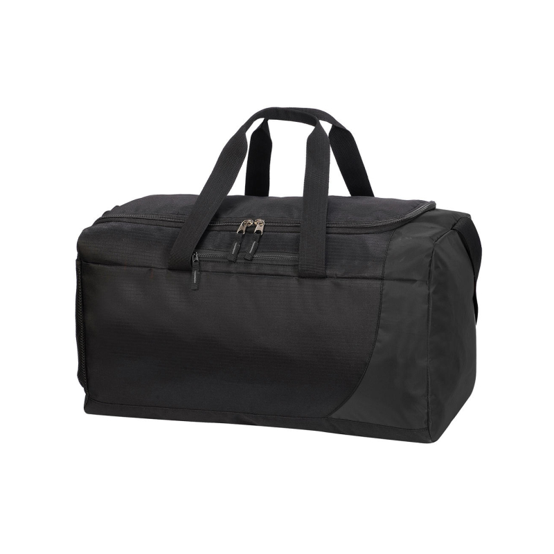 100% polyester 420D | Poignées de transport avec attache auto-agrippante | Bandoulière réglable | Grand compartiment principal avec fermeture à glissière | Poche en filet sur le côté | Poche à l arrière avec fermeture à glissière | Capacité: 43 Litres | Dimensions: 54 x 30 x 27 cm | Convient pour la sérigraphie, le transfert et la broderie.