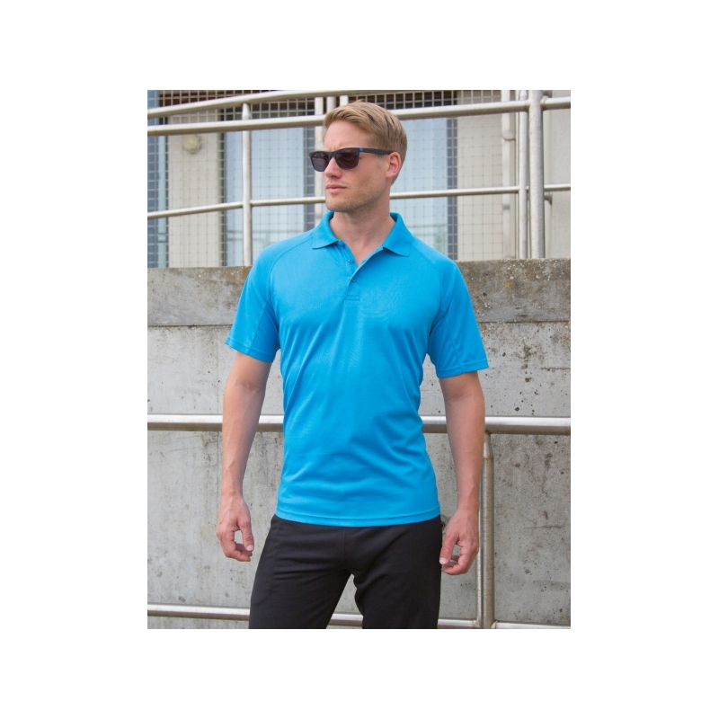 Poids : 135 g/m² | 100% polyester nid d`abeille, poids plume | Respirant et séchage rapide | Col à côtes avec patte de boutonnage 3 boutons | Sans étiquette | Surpiqûres aux épaules et détails sur les manches | High Tech Stretch pour un maintien parfait | Idéal pour les encres à base d`eau.