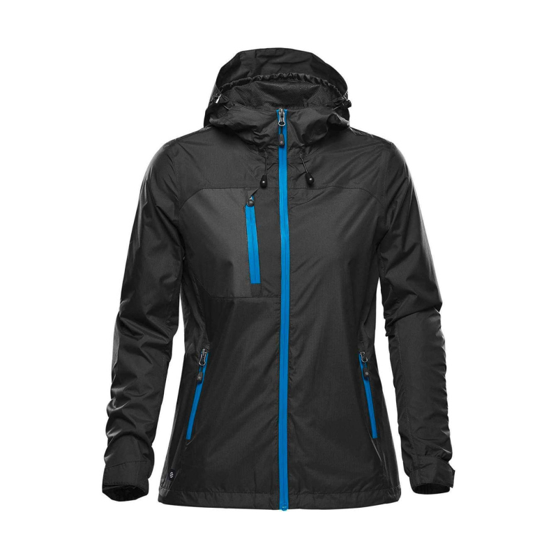 Poids : 104 g/m² | 100 % polyester indéchirable | Doublure : 100% polyester | Imperméable 5000 respirant | Finition déperlante sans PFC | Capuche attachée ajustable | Zip intégral avec rabat-tempête intérieur | Manches articulées | Poches poitrine et latérales zippées | Coutures soudées aux endroits stratégiques | Poignets ajustables | Ourlet ajustable avec cordon de serrage | Coupe ajustée.