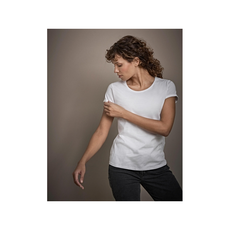 Ladies` Roll-Up Tee de la marque Tee Jays. T-shirt femme avec manches roulées et col rond échancré