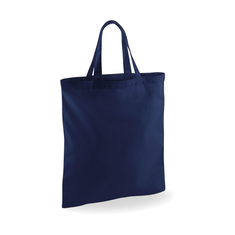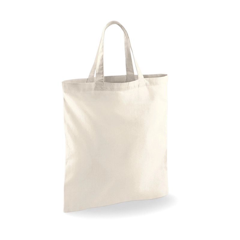 Poids : 140 g/m² | 100% Coton | Poignées courtes 40 cm | Capacité: 10 litres | Dimensions: 38 x 42 cm | Espace pour le marquage: 33 x 36 cm.