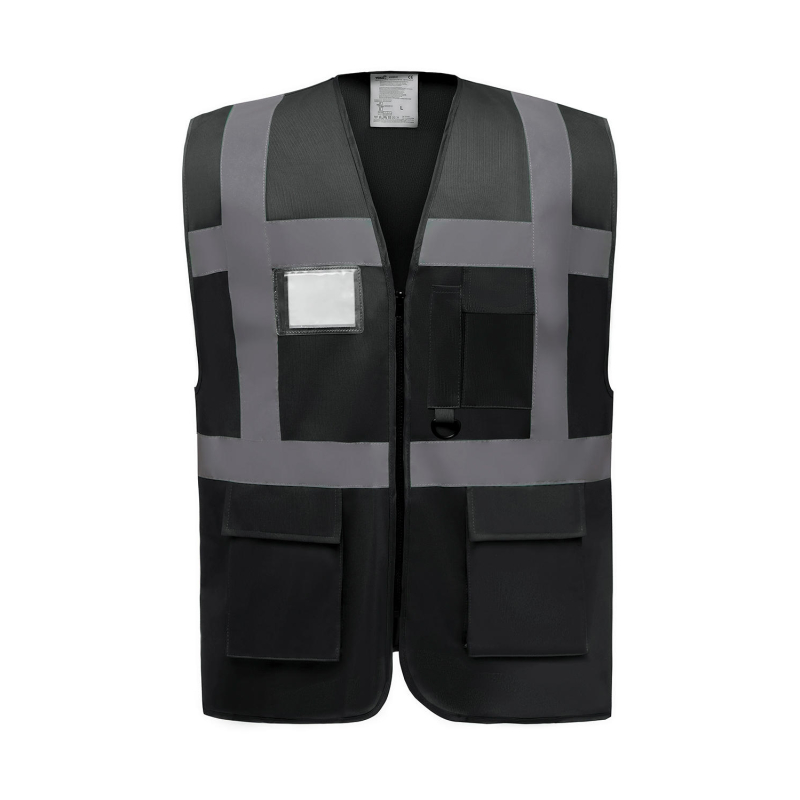 125 g/m² | 100% polyester | veste avec bandes réfléchissantes horizontales et verticales devant et dos | poche téléphone avec fermeture auto-agrippante | fenêtre d’identification à l’avant | 2 poches de côté avec fermeture auto-agrippante | poche pratique à l avant.