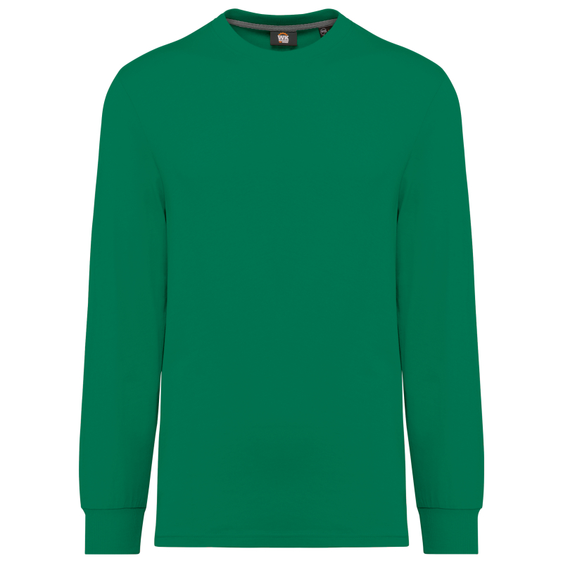 Coloris unis : 100% coton biologique | Coloris chinés : 92% coton biologique / 8% polyester | Coloris fluorescents : 65% polyester recyclé / 35% coton | Coupe droite | Encolure ronde en bord-côte 2x1 avec élasthanne et bande de propreté orange sur les couleurs unies et chinés et ton sur ton sur les couleurs fluorescentes | Finition double aiguille au bas de vêtement | Etiquette de marque Tear Away | Certifié STANDARD 100 by OEKO-TEX®N° CQ1007/7, IFTH |