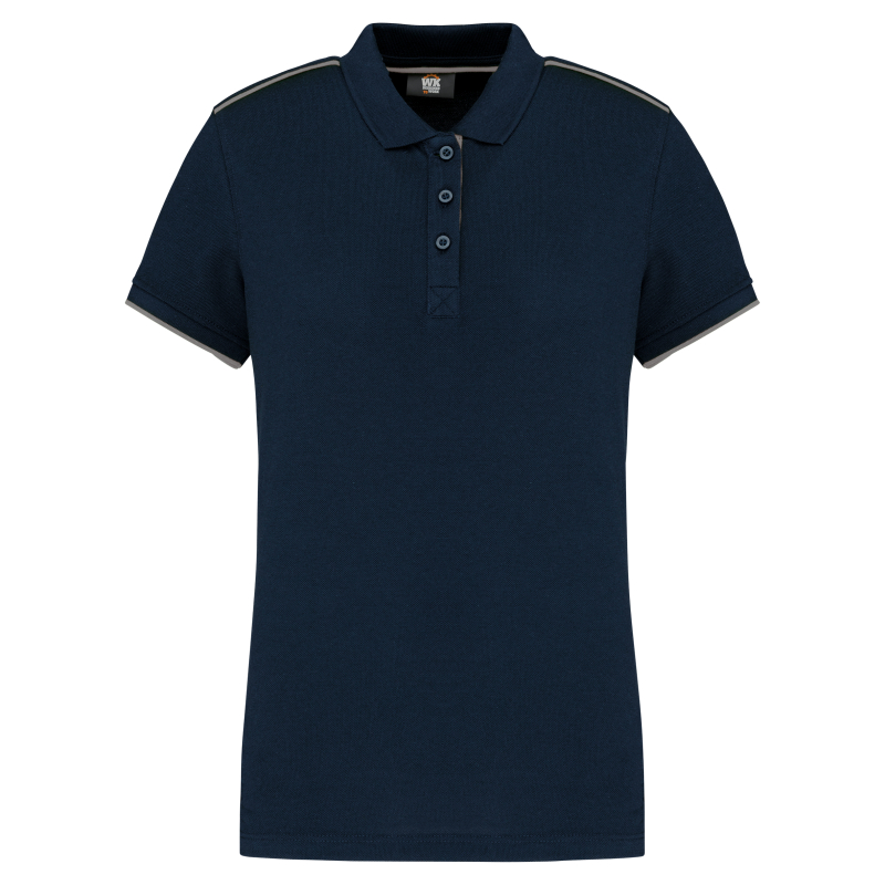 Polo Day To Day contrasté manches courtes femme. Lavable à 60°C et traitement antiboulochage. Liserés contrastants col, épaules, patte de boutonnage.