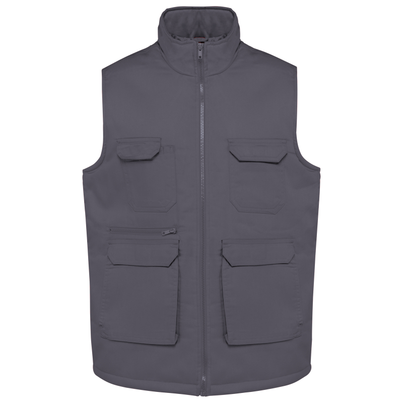 Gilet polycoton multipoches rembourré unisexe. Personnalisation facilitée. Multiples poches fonctionnelles. Rembourré pour un meilleur confort et de plus de chaleur.