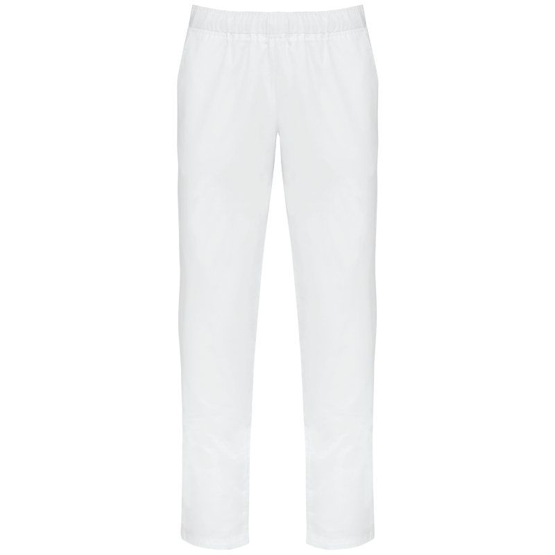 Pantalon coton unisexe. Etiquette détachable pour faciliter la personnalisation. Prévu pour les lavages industriels, il assure protection et hygiène au quotidien. Tissu sergé alliant confort et durabilité.