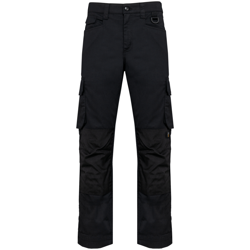 65% polyester / 35% coton | Lavage à 60°C | Coupe droite | 2 poches devant (sacs de poches en tissu principal) dont 1 avec petite poche intérieure fermée avec rabat contrasté (sauf pour coloris noir) | 2 poches cargo volantes à soufflet et rabat contrasté (sauf pour coloris noir) avec fermeture velcro dont une à 2 compartiments et emplacements outils | 2 poches arrière avec rabat et fermeture velcro, 1 porte-marteau à gauche au porté | 2 poches genouillères Cordura® contrastées (couleur noire pour toutes les couleurs) avec velcro et rabat intérieur pour maintenir et adapter la genouillère | Ceinture avec passants | Anneau en plastique fixé sur la ceinture à l'avant gauche au porté | Fermeture zippée et boutonnée (bouton métal recouvert de plastique) | Double piqûres coutures côtés, triple coutures fourche devant et dos | Genouillère non fournie | Surpiqûres nervures à l'entrejambe | Entrejambe 80 et ourlet de 5 cm | Etiquette de marque détachable |