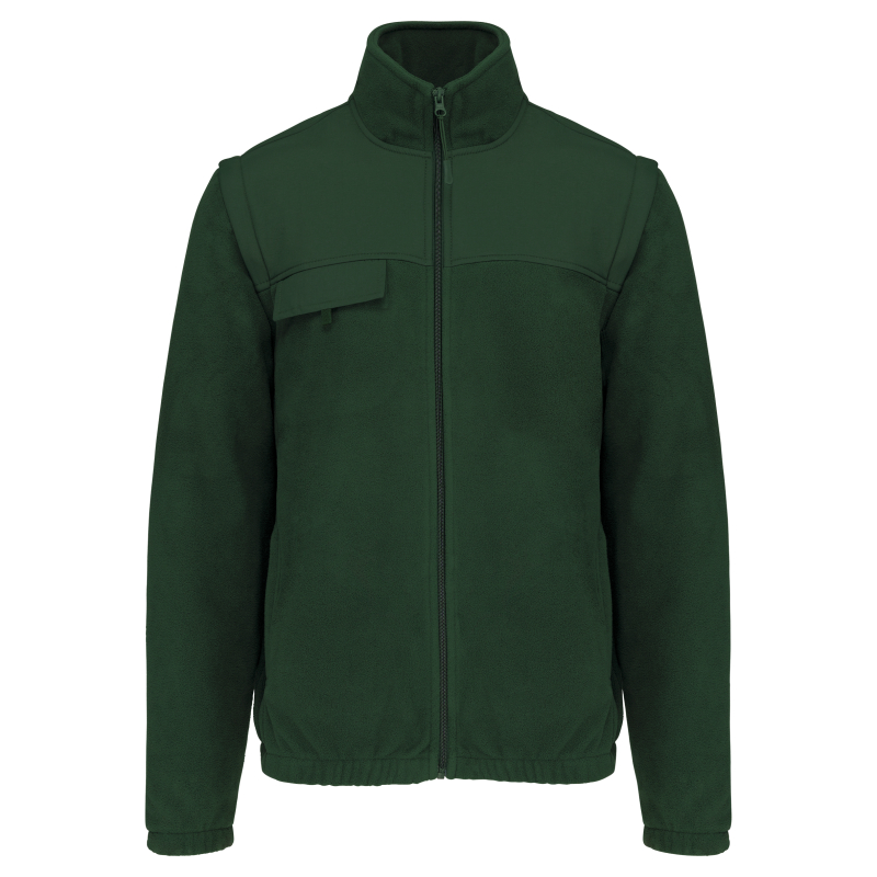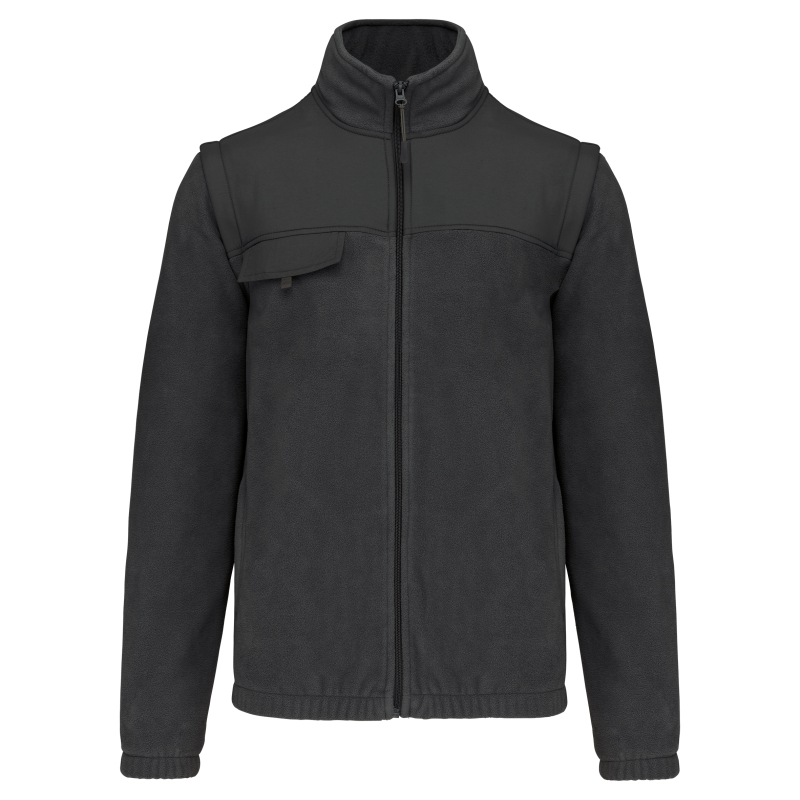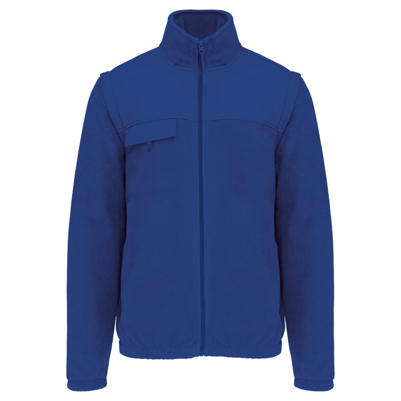 Veste polaire manches amovibles homme. Personnalisation facilitée sur les empiècements face et dos. Veste en polaire doublée et renforcée, parfaite pour un usage professionnel. Manches amovibles doublées polyester pour plus de confort et de chaleur.