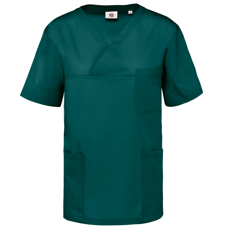 Sergé 65% polyester / 35% coton | Norme ISO 15797 / lavage industriel 75°C (20 lavages) | Coupe confortable | Encolure en V croisée | Poche plaquée poitrine côté cœur | 2 grandes poches plaquées avant | 2 fentes latérales | Etiquette de nom à l'intérieur du vêtement | Etiquette de marque Tear Away povant être remplacée facilement.