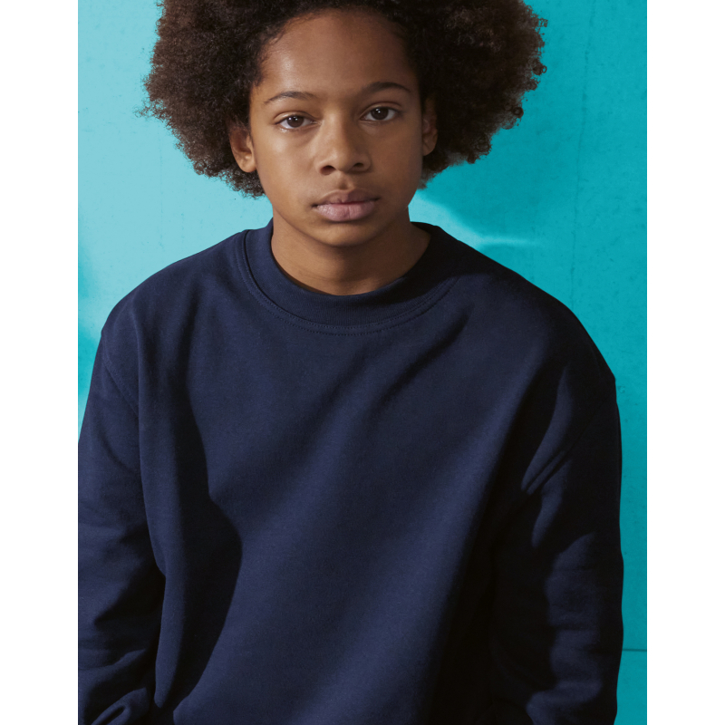 Poids : 280 g/m² | 80% coton durable, 20% polyester recyclé certifié RCS | Conçu pour les garçons et les filles (non genrés), de l`enfant à l`adolescent | Coutures latérales | Coupe classique, moderne et décontractée pour toutes les occasions | Face | 100% coton avec une excellente imprimabilité et un toucher doux | Les manches set-in avec une épaule légèrement tombante améliorent la mobilité | Poignets et ourlet inférieur classiques en côte 1x1 avec élasthanne