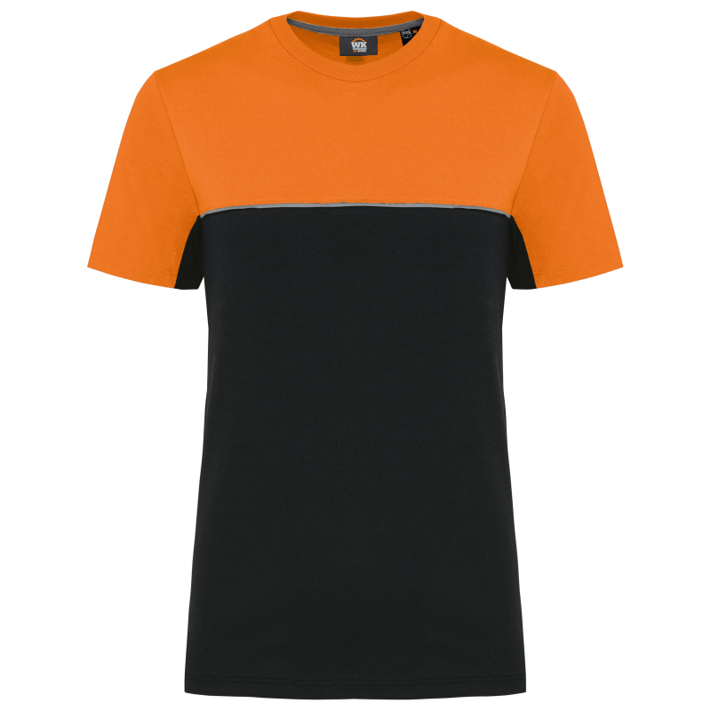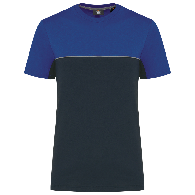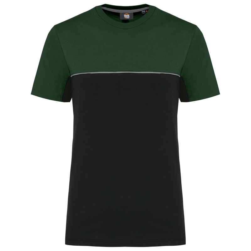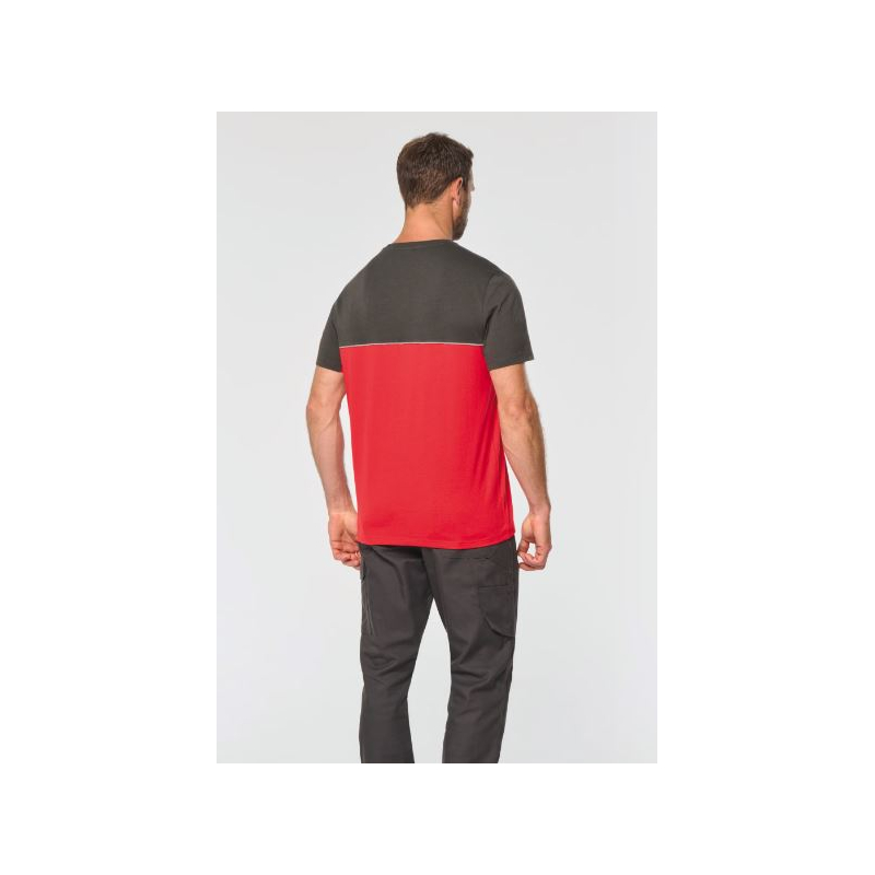 T-shirt de travail bicolore, lavable à 60°C. Traitement antiboulochage pour une meilleure protection du tissu et une longévité accrue. T-shirt réalisé à partir de fibres polyester recyclées.