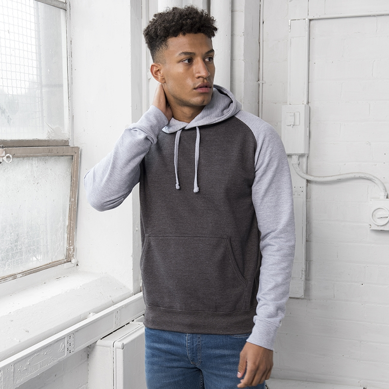 AWDis JH009 Baseball Hoodie. Der zweifarbige Hoodie mit kontrastierenden Ärmeln und Kapuze für einen echten US-Look, ein Klassiker für Sportteams