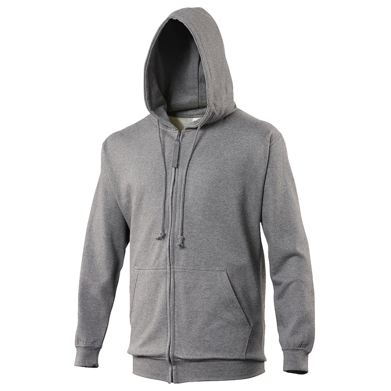 Kapuzenpullover und Reißverschluss. Für einen integralen Rapper-Look bietet dieser Pullover unter anderem eine Kängurutasche und versteckte Öffnung, um die Ohrringfäden von seinem MP3 zu passieren.