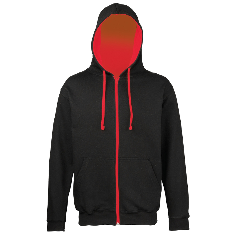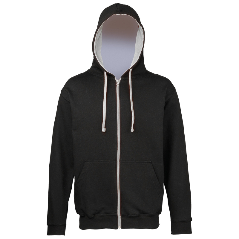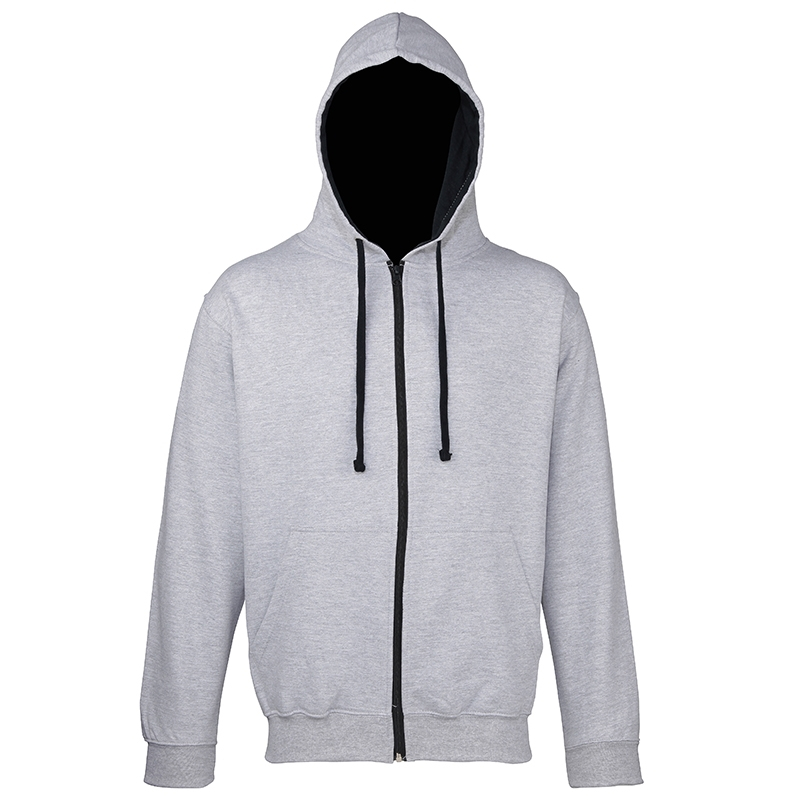 Sweatshirt mit Reißverschluss Varsity AWDis JH053. Doppelte Stoff Kapuzenpullover mit kontrastierendem Futter und kontrastierendem Kunststoff-Integralzip