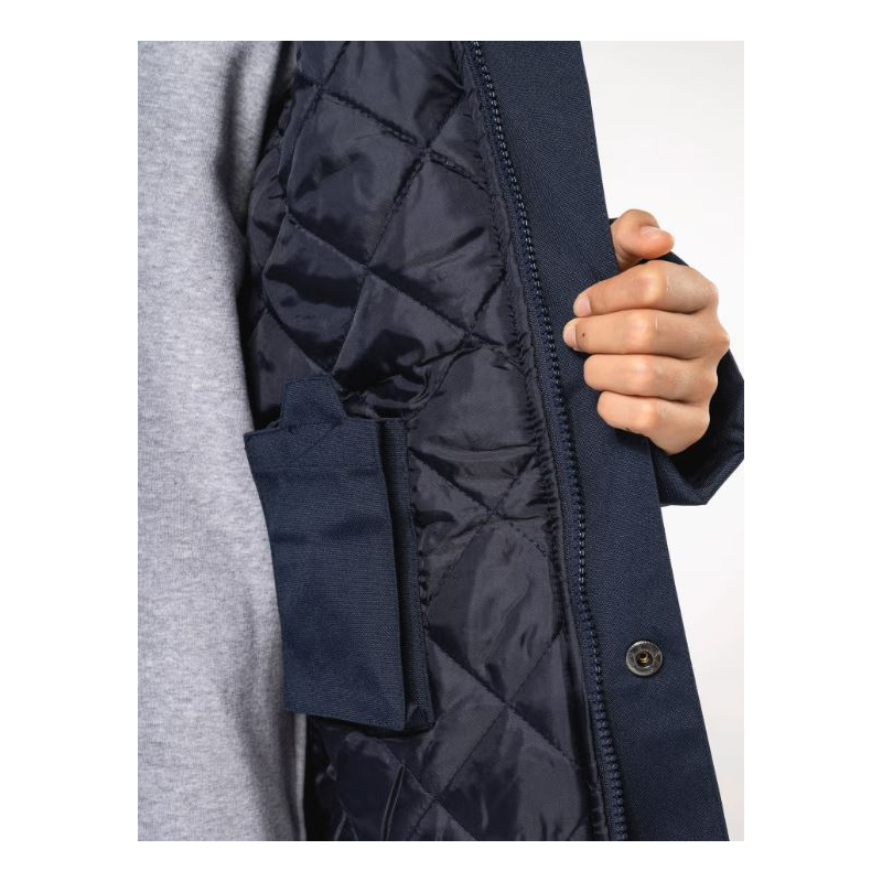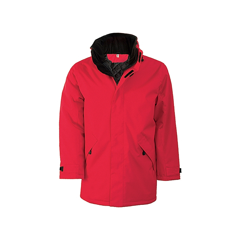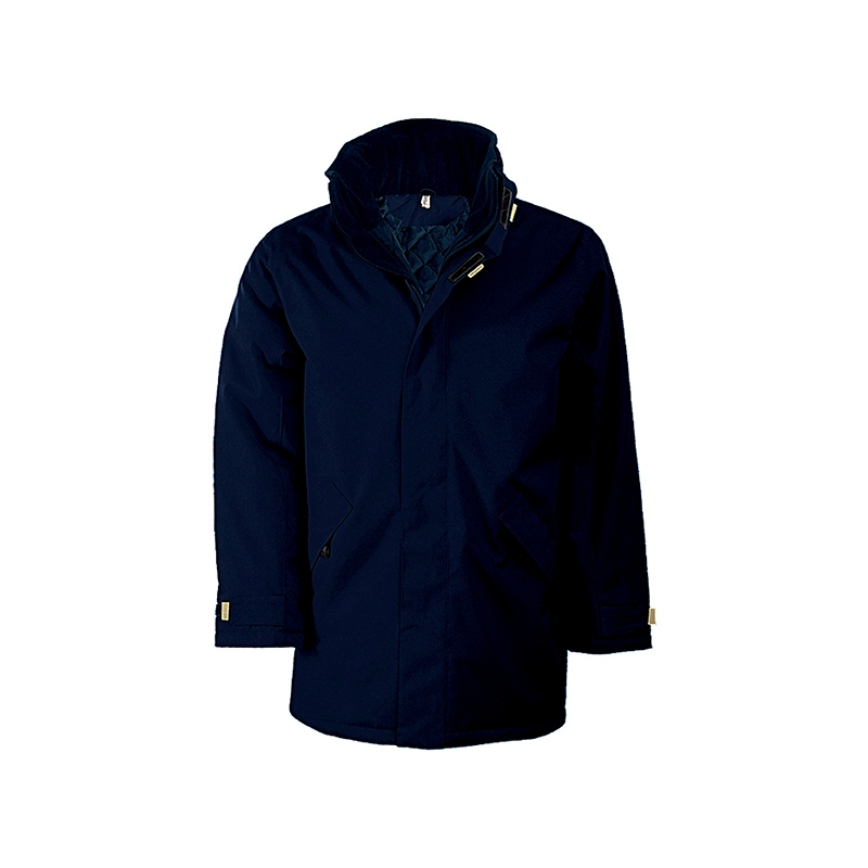 Gewicht: 450 g/m2. Zusammensetzung: Außen: 100% Polyester Oxford. Futter: 100% Polyester gesteppt. Reißverschluss und selbstklebende Knöpfklinke. 2 seitliche reißverschlusstaschen. 2 innentaschen mit 1 für mobiltelefon. Kapuze in Kragen und Kragen gefüttert polar.